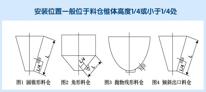 2、如圓錐形料倉因其表面剛度較大,可適當(dāng)選擇振動(dòng)力偏大的,棱錐形倉料可適當(dāng)偏小;