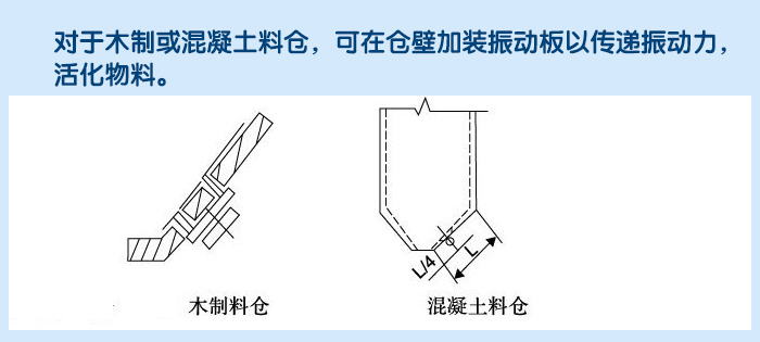 5、如安裝兩臺(tái)以上,可在對(duì)稱面的不同高度安裝,對(duì)于木制或混凝土料倉,可在倉壁加裝振動(dòng)板以傳遞振動(dòng)力,活化物料。