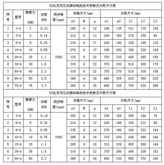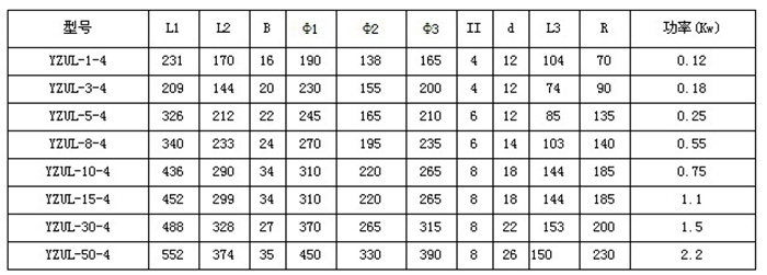 YZUL振動(dòng)電機(jī)技術(shù)參數(shù)