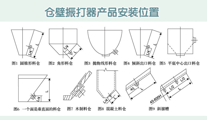 倉(cāng)壁振打器產(chǎn)品安裝位置及方法: